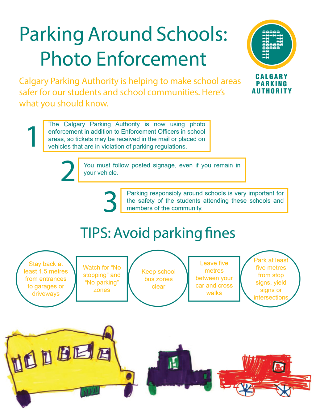 - The Calgary Parking Authority is now using photo enforcement in addition to Enforcement Officers in school areas, so tickets may be received in the mail or placed on vehicles that are in violation of parking regulations.